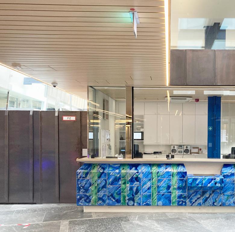 Gestaltungskonzept für den Umbau Pforte und Empfang mit Empfangsmöbel und Windfanganlage, Integration Lichtkonzept (Fachplanung)