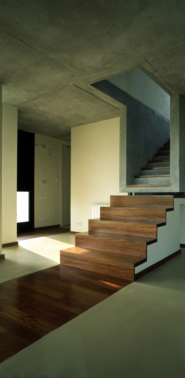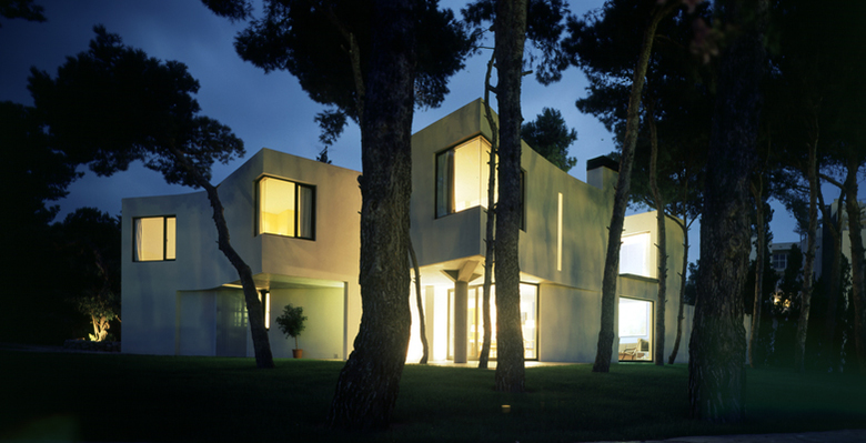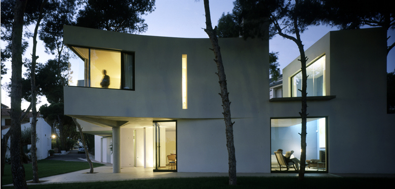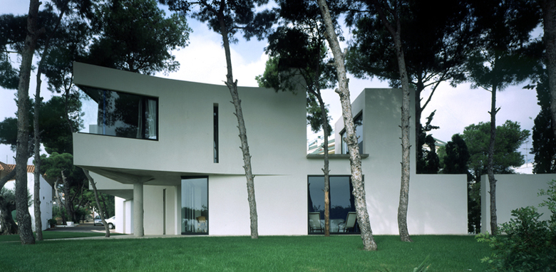 The project is located in one of the few remaining wooded parcels on the waterfront of St. Charles, crowned with a pergola of dubious quality but part of the architectural landscape of the city. From the start our intention has been to intervene respecting the scenic qualities of the site. The project is placed in the plot retaining most existing pins and unmodified image of the seafront. The program of family housing is distributed in two plants having different profiles to generate input porches and living and creating a private terrace on the top floor. This resource allows us to minimize the effect of the openings are designed considering the views "under pines" that cut the magnificent landscape of the Delta.