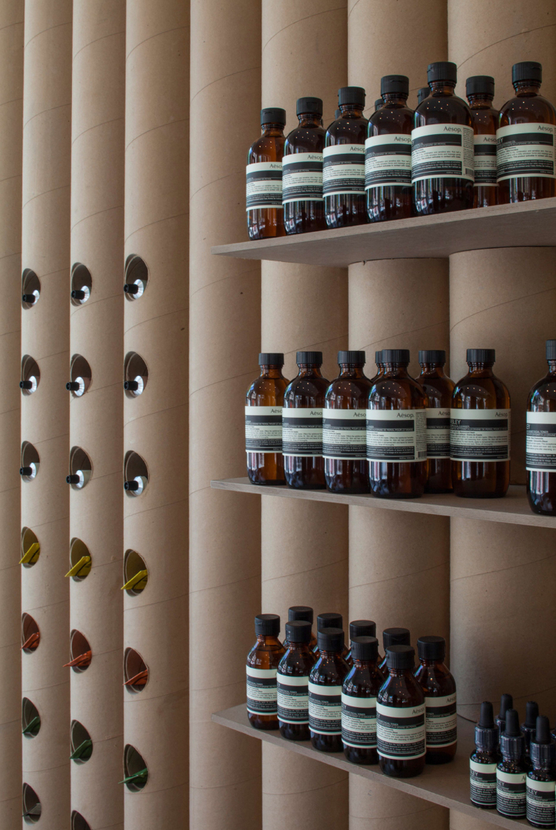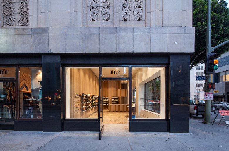 Nestled in the ground floor corner of the 1929 Eastern Columbia Building, Aesop Downtown, the company’s largest store to date, is situated in Los Angeles’ historic theatre district, at the edge of its Fashion District and adjacent to the famous Orpheum Theatre.