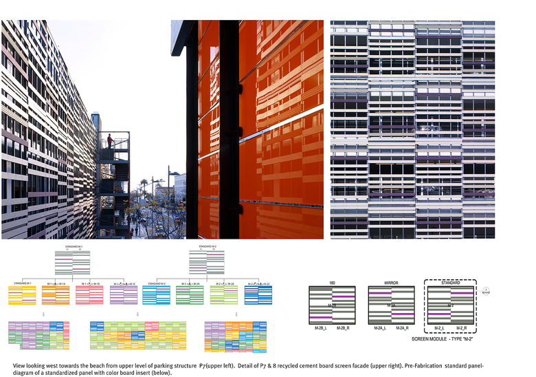 New features include vibrantly patterned system of panels that screen the parking decks.