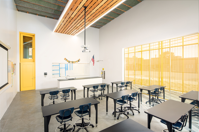 South Los Angeles High is a progressive, public charter high school known for its collaborative, curriculum and strong community connection.This building and addition to the 1950’s campus creates a flexible teaching environment that supports significant parental involvement and puts student life at the center of the school and unites the campus community.