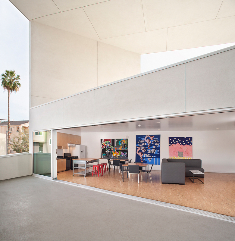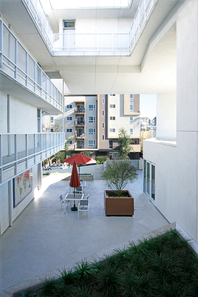 The SIX is a 52-unit LEED Platinum affordable housing project that provides a home, support services and rehabilitation for previously homeless and/or disabled veterans. It is located in the MacArthur Park area of Los Angeles. McArthur Park has one of the highest densities in the USA with over 38,000 people per square mile and a total population of 120,000 people in 2.72 square miles.