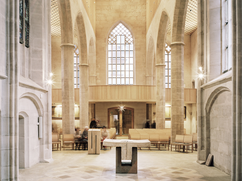2014 ist St. Martha, einst die Kirche der Nürnberger Meistersinger, abgebrannt. Im Zuge des Wiederaufbaus blieb die alte Außenkontur erhalten, der neu geformte Innenraum ist jedoch geprägt durch ein zeitgenössisches Flechtwerk aus Holz als Deckenkonstruktion. Als Leitidee des Lichtkonzeptes fiel die Wahl auf eine gleichmäßige Architekturbeleuchtung ganz ohne Akzentuierungen, die den Innenraum als gesamtleuchtende Kubatur – gleich einem Gefäß – in Szene setzt. Die Leuchten wurden so positioniert, dass sie für den Besucher kaum wahrnehmbar sind. Auf diese Weise kann das abwandelbare atmosphärische Raumlicht, als Hauptakteur, seine Wirkung voll entfalten.