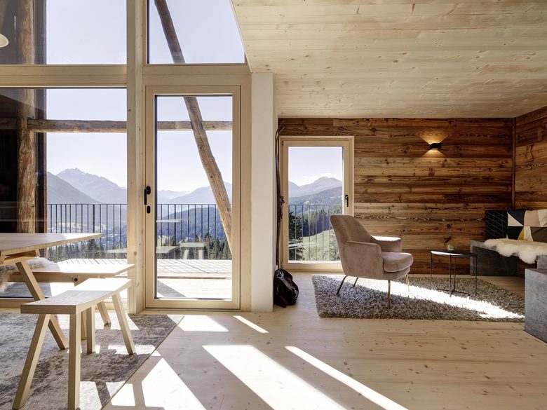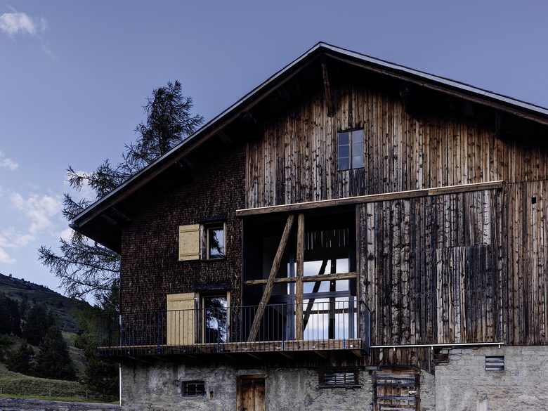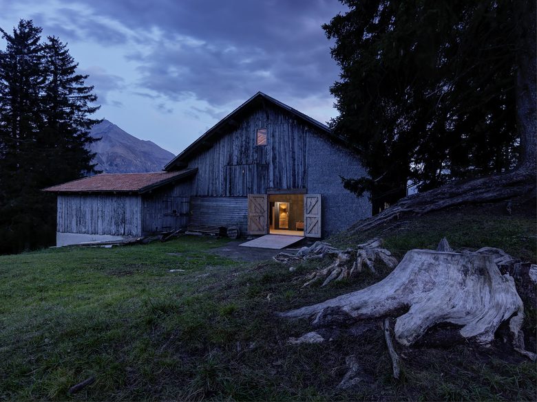 Die Alphütte Briula liegt oberhalb der Gemeinde Valbella auf einer Anhöhe in rund 1800 m ü.M. Der Erhalt der alten Bausubstanz war von zentraler Bedeutung und so blieb die Aussenhülle des Stalls komplett unberührt. Der neue Baukörper im Inneren präsentiert sich mit seiner geometrischen Form prägnant wie auch distanziert zum Stall und spannt ein harmonisches Kraftfeld zwischen Halle und Skulptur auf. Das Projekt findet seinen Ursprung im Wechselspiel zwischen Innen und Aussen, in der Schönheit der Holzkonstruktion mit interessanten Lichteinfällen und dem beeindruckendem Panorama entlang der Lenzerheide.