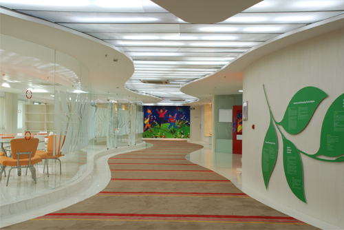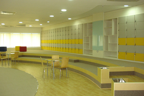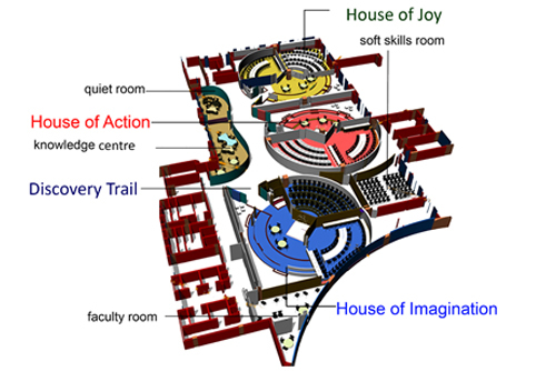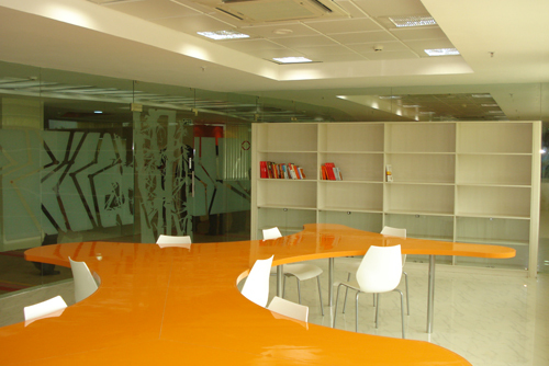 “Orchard”, is a learning centre for campus recruits at MindTree’s headquarters in Bangalore. It is designed to reflect the needs of the new generation. This generation, born after 1980, who are also known as “Millenials”, prioritize opportunity to learn over job security, and collaboration over solitary work. They have grown up being comfortable with technology, and want their work to be enjoyable. They respond to mentoring over supervision, as mentoring is oriented towards learning and is a two way communication. Therefore their training must not only cover technical issues but should also build a bond with the ethos of the company. This is done by evoking the evoking the support one gets in school from the combination of home and school. The school for Orchard is a set of training rooms that are in another floor of the same campus. Orchard builds the sense of home by dividing the 600-person centre into three 200-person “homes”. Each home is mentored by a senior MindTree manager and contains a large amphitheatre 'hang-out' and gathering space, a classroom (for classes scheduled by the house mentor) and a computer lab as a space for working, surfing, blogging and so on. A community spine, called “The Discovery Trail” links the three homes and displays information on the company. Along this trail lie the shared facilities of a knowledge centre, a room for quiet work, and a room for training in soft skills such as making presentations and interacting with clients.