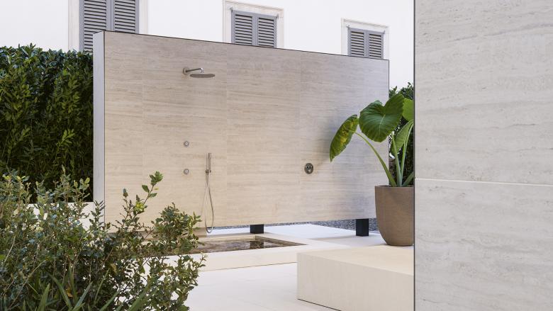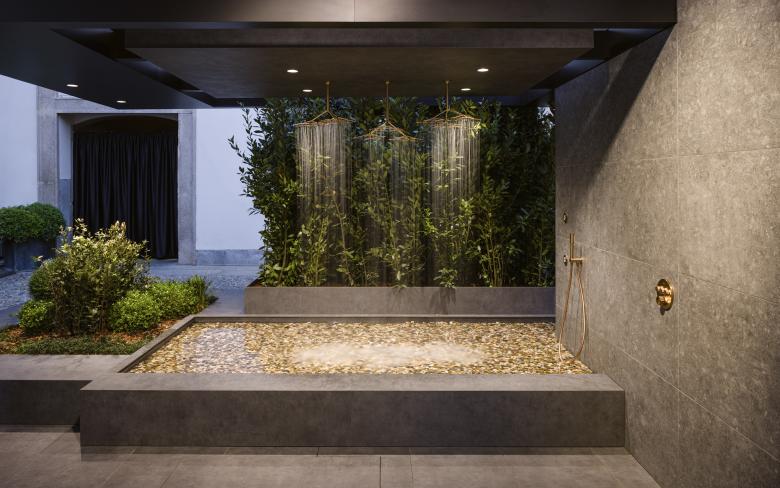 In perfekter Symbiose von Architektur und Produkt sind nahezu rituelle Räume entstanden. Durch das Zusammenspiel mit Wasser, Klang, Wind und Schatten entwickelte sich eine zen-artige Atmosphäre – ein Ort der Entschleunigung und zum Energietanken. Ganz im Sinne des Spa-Gedankens "Salus per aquam – Gesundheit durch Wasser", dem Gründungskonzept hinter der GROHE SPA Kollektion.