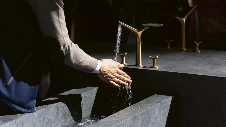 In einem Rundgang präsentieren sorgfältig kuratierte "Aquatecture"-Räume die vier Ebenen von GROHE SPA: multisensorische Momente, anspruchsvolle Farben und Oberflächen, maßgeschneiderte Kollektionen und innovative 3D-metallgedruckte Produkte. Jedes Setting vermittelt in atmosphärischen Räumen die Features und individuellen Designlösungen der Produktlinien, wobei Wasser stets das zentrale Element ist.