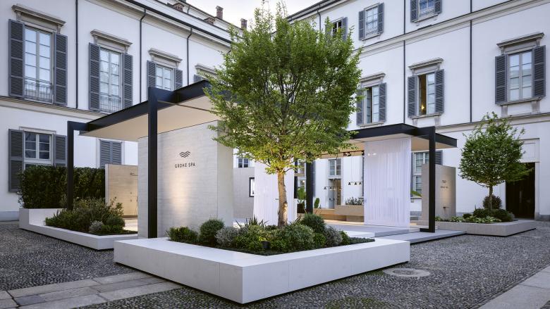Alljährlich trifft sich in Mailand zur Möbelmesse und auf der Design Week die internationale Design Community. GROHE präsentiert in einer immersiven Installation mitten im Stadtzentrum im Palazzo Reale seine Premium-Submarke GROHE SPA. Das Konzept entstand in Zusammenarbeit mit dem Design und Brand Identity Team von LIXIL Global Design. Die Idee der "Aquatecture" lässt Wasser und Architektur miteinander verschmelzen und verwandelt den Cortile d’Onore, den ehemaligen Hofgarten des Palazzos, in einen oasenartigen Innenhof.