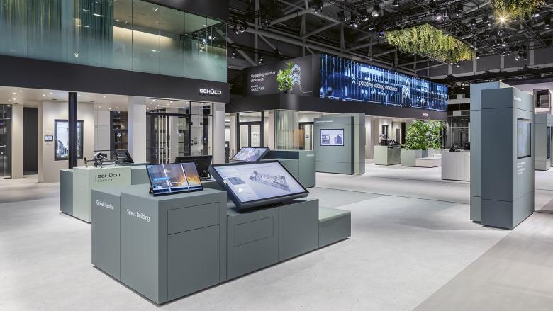 Der Schüco Stand ist einmal mehr Eyecatcher und einladende Markenarchitektur. Im Mittelpunkt der Customer Journey stehen innovative Produktpräsentationen und Technologieexpertise, vervollständigt mit dem umfassenden Serviceangebot des Bielefelder Unternehmens – ein ganzheitliches Portfolio für die topaktuellen Themen der Branche: Bauen im Bestand, Sustainability & Schüco Carbon Control, Brandschutz & Hochsicherheit, modulares Bauen, Lösungen für den Wohnbau, Digitalisierung des Bauwesens sowie die Partnership area.