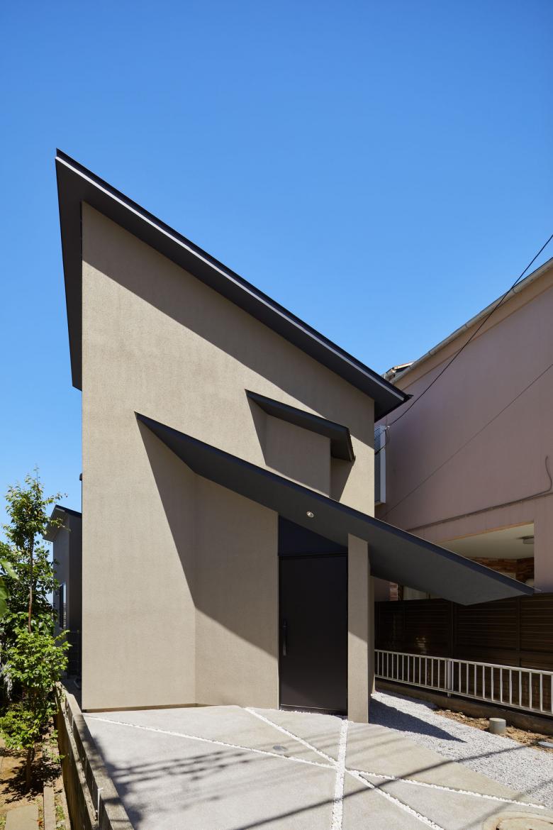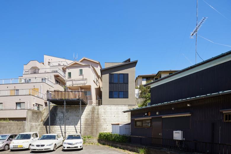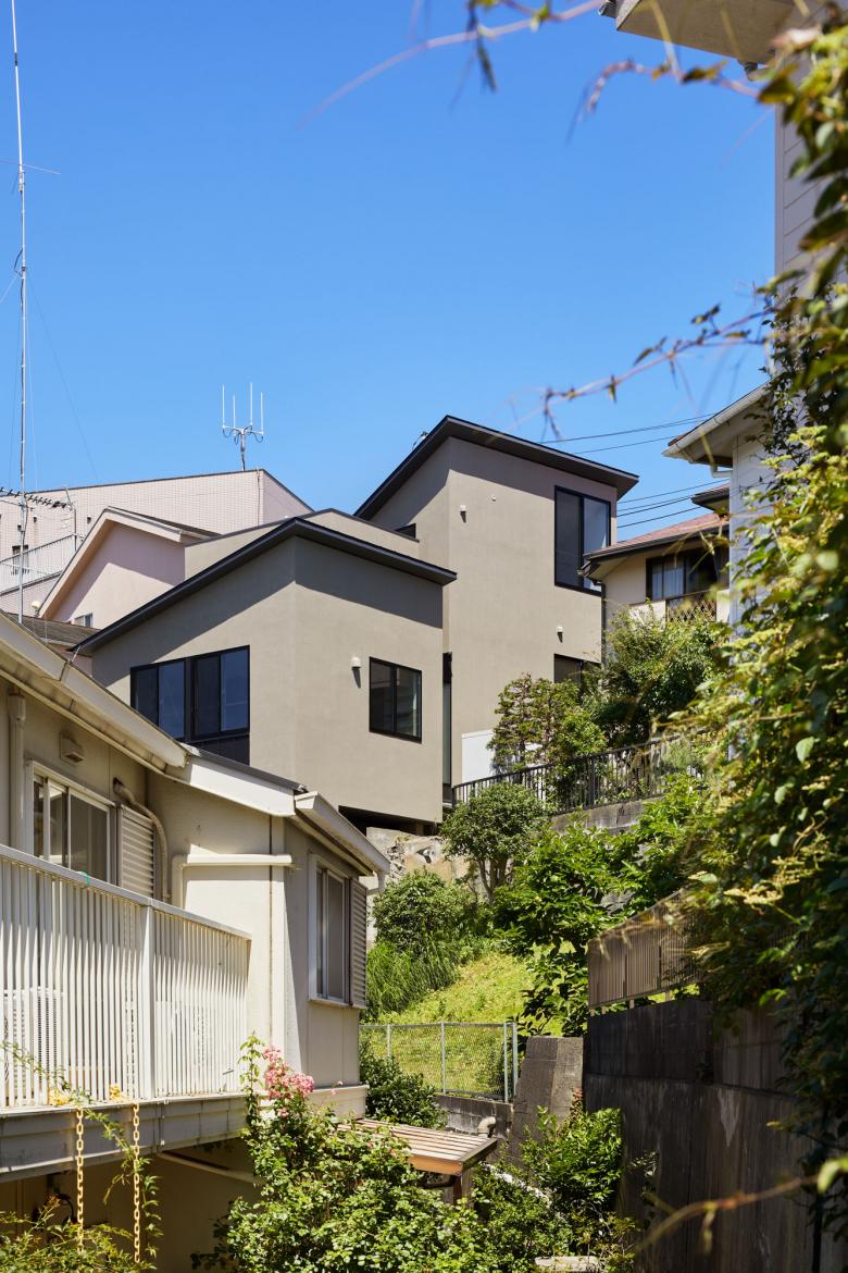 既存家屋解体時に現れた敷地を二分する擁壁を人工物でなく現代的な地形と捉えると、そこは唯一無二の魅力的な敷地にも思えてくる。