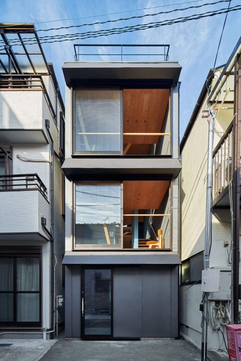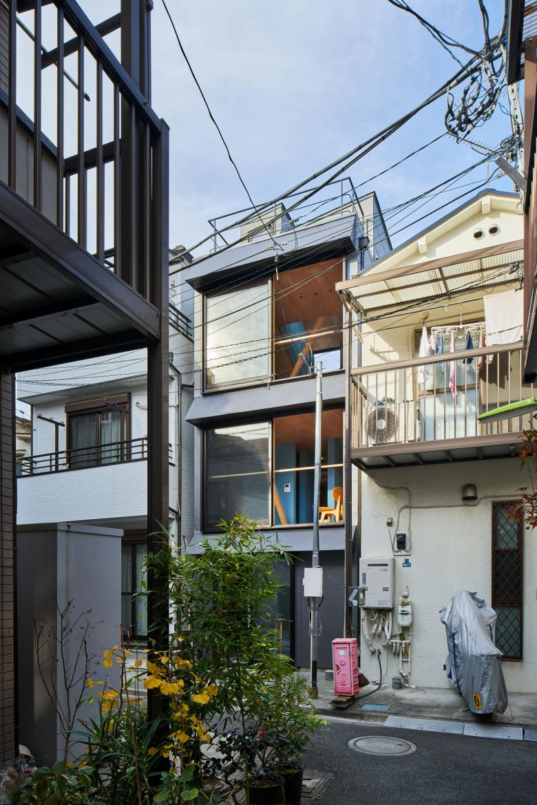 「タイニーハウスを建てたい」と建主が探してきた土地はわずか30㎡の超狭小地だった。木造住宅密集地域の特有な空気感は、路上に溢れたモノの配置により巧妙に揺らぐ生活領域と路地が密接する距離感に留まらず、建物が密集し群がることにより集団規定やその他制度を軽く飛び越えるような解放性に起因するはずだ。