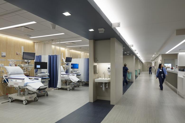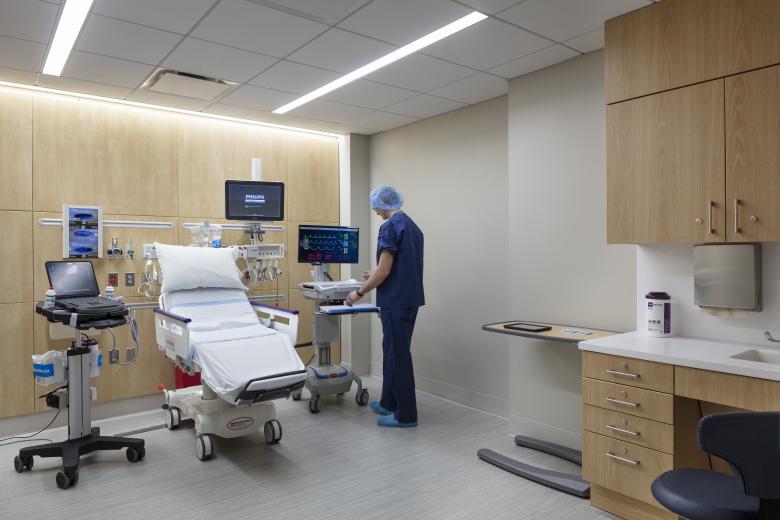 Our work began with programming, test-fits, and planning. Working closely with our academic medical center clients, we explored various clinical care configurations within the 42,000 sf space. The final configuration features an Ambulatory Surgery Center, including four Class C Operating Rooms and an on-site Sterilization Facility, or Central Sterile. The facility also includes a Physical Therapy and Post-Surgical Rehabilitation practice, Gastroenterology Care with procedure rooms, and two family practices.
