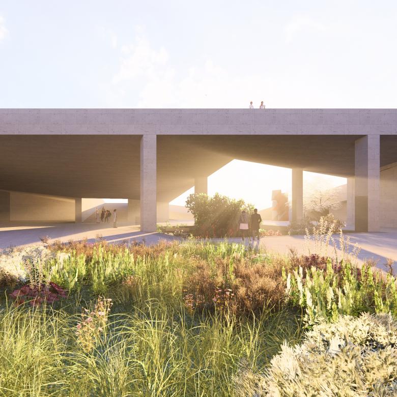 The most prominent civic feature of the city center of Yerevan, Armenia is the Cascade, a monumental, 300-meter-high terraced structure with gardens, fountains, and continuous stairs on its exterior and galleries, shops, and public escalators inside. Sheathed in white travertine, the Cascade is a well-used public amenity for Yerevan as well as a component of urban pedestrian circulation, connecting the downtown Kentron district with the neighborhoods on the hills above. However, the Cascade was never finished; construction began in the 1970s but was suspended during the turmoil of the 1980s, leaving the upper third of the structure unfinished. In the late 2000s, David Hotson_Architect proposed a design for a museum complex to fill the hole at the top of the Cascade; this complex, the Cafesjian Center for the Arts, began construction but was placed on hold in 2009 following the global financial crisis. At a moment when consensus is growing to finally complete the Cascade, the “Cascade Gardens Cultural Center" proposal represents the further development of these existing plans for a modern Yerevan in the midst of great transformation.