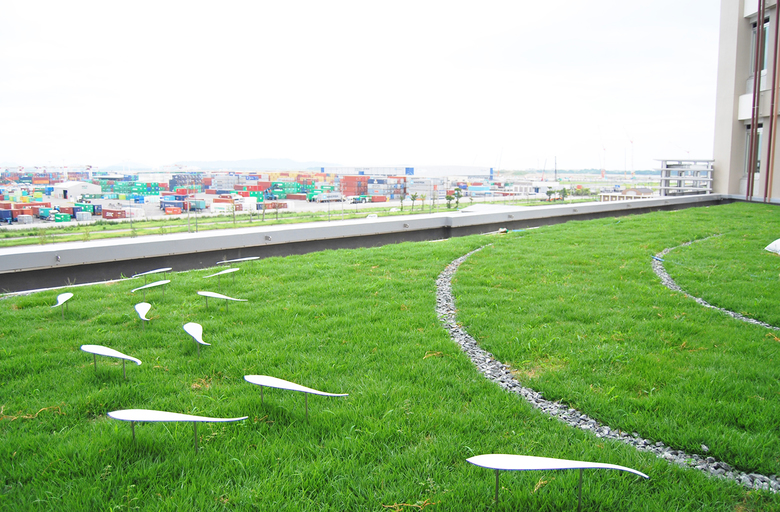 ランドスケープは主に1Fのホスピタルガーデンと4Fの屋上庭園で構成され、こども病院が海に隣接していることから「海」をキーワードにデザインを展開した。ファニチャーやパーゴラは、海の軟体動物や深海魚等を想起させる抽象的なデザインを施すことにより、子どもたちの想像力や好奇心を喚起させることを意図した。また、周辺環境とランドスケープとを出来るだけシームレスに繋ぐことで、地域住民がランドスケープを公園のように気軽に利用できる環境をつくりたいと考えた。なぜなら、地域住民がランドスケープを日常的に利用することによって賑わいが生まれ、その賑わいが病院内へと波及していくことを期待したからである。