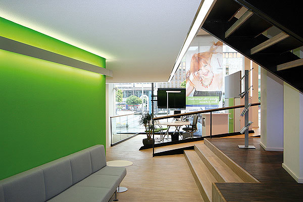 Die Sanierung des Allbauhaus in Essen verleiht dem neuen Kundenzentrum im Erdgeschoß ein modernes Erscheinungsbild, das sich zur Stadt öffnet. Es dient gleichzeitig als Multifunktionsfläche für Vorträge, Ausstellungen und Lesungen. Das Licht wurde flexibel auf die unterschiedlichen Nutzungen, Oberflächen und Raumfarben abgestimmt. Funktions- und Akzentlicht können über eine zentrale Steuerung individuell, je nach Veranstaltung, geschaltet oder gedimmt werden.