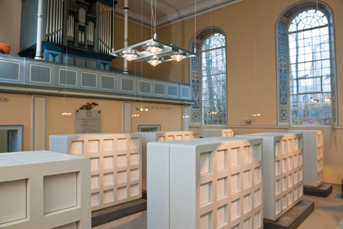 Referenzprojekt ist das Kolumbarium in Hückeswagen.Die dimmbaren quadratischen Pendelleuchten mit 30 W Anschlussleistung haben eine extrem lange Lebensdauer.