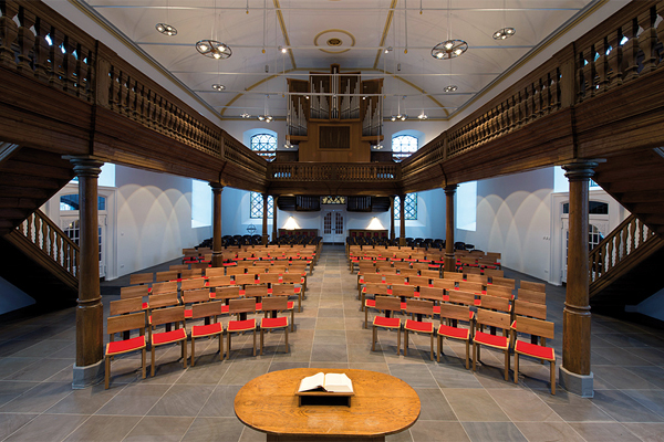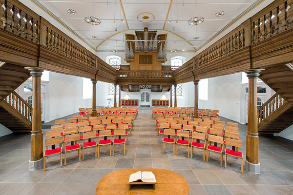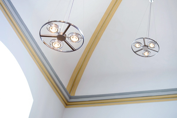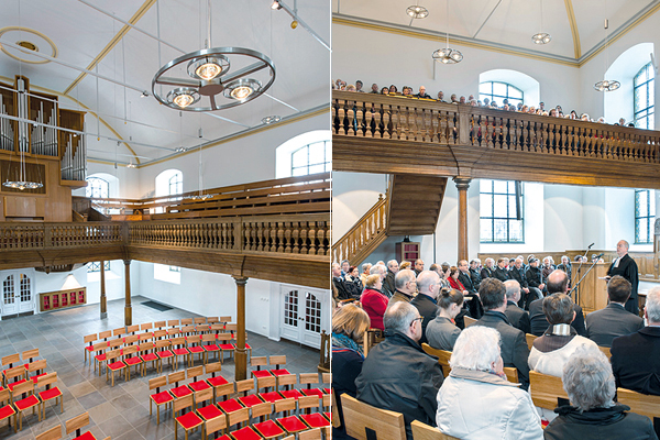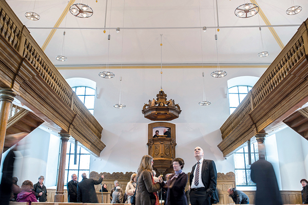 Erstes Kirchenprojekt das komplett in LED Technik umgesetzt wurde. Das Lichtkonzept wurde auf die unterschiedlichen auch variierenden Nutzungen hin abgestimmt. So finden wir zum Beispiel unterhalb der Emporen richtbare LED Strahler, da dieser Bereich auch temporär für Ausstellungen genutzt werden kann.