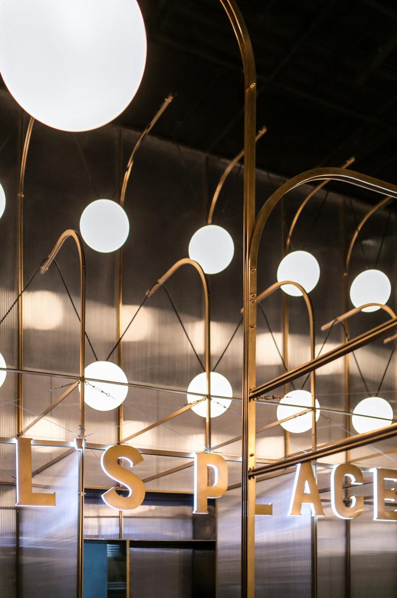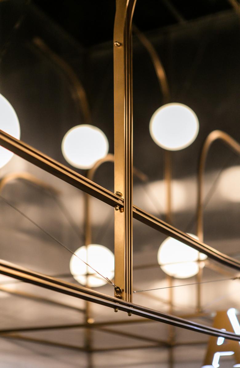 Last but not least, all areas are illuminated at varying levels by delicate light spheres, orchestrated through hanging at different heights from the same steel structure above, and becomes the highlight detail of the space.