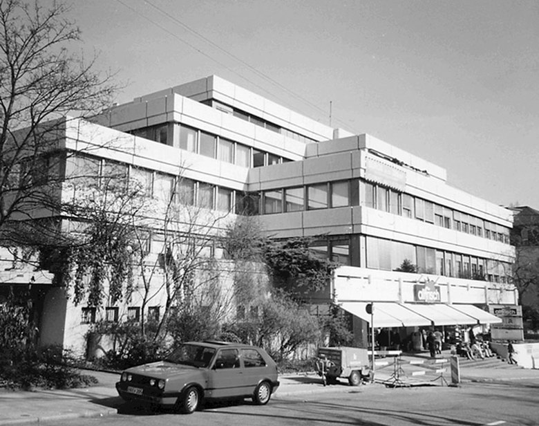 Charakteristisch für die Entstehungszeit des Gebäudes ist die plastische Baukörperform mit einer betont horizontalen Schichtung der Stockwerksebenen, mit Terrassierungen und ausgeprägten Fenster- und Brüstungsbändern, die sich jedoch in ihren Proportionen nicht in den städtebaulichen Maßstab der benachbarten Stadtvillen einfügte. Es lag nahe, bei der Entwicklung der neuen Fassade, das Thema der horizontalen Bänderung aufzugreifen und weiterzuentwickeln mit dem Ziel, die vorhan-dene Baukörpermasse stärker zu gliedern und besser in die Umgebung einzubinden.