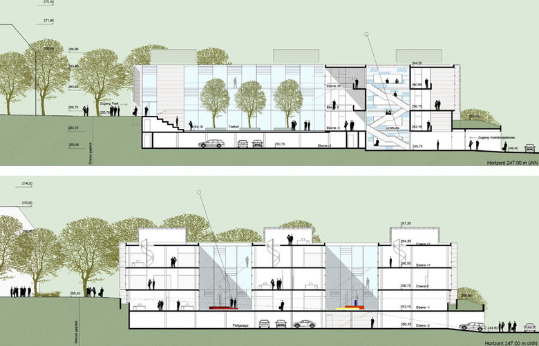 Das projektierte Büro- und Dienstleistungszentrum besticht durch seine individuelle und einzigartige Lage inmitten des sogenannten 'Kulturpark Berg', einem innerstädtischen Parkgelände im Osten der Stuttgarter Innenstadt.