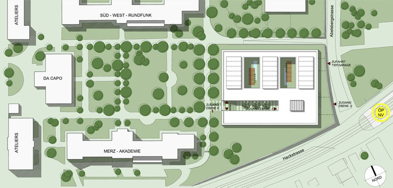 Vor allem Werbeagenturen, Designer, Architekturbüros, Firmen der Film- und Medienbranche, aber auch Teile des Südwestrundfunks sowie ein italienisches Restaurant haben sich seit den achtziger Jahren in den Backsteingebäuden des ehemaligen Militärhospitals angesiedelt. In direkter Nachbarschaft des geplanten Gebäudes befindet sich die Merzakademie, die einzige staatlich anerkannte private Hochschule für Gestaltung in Deutschland.