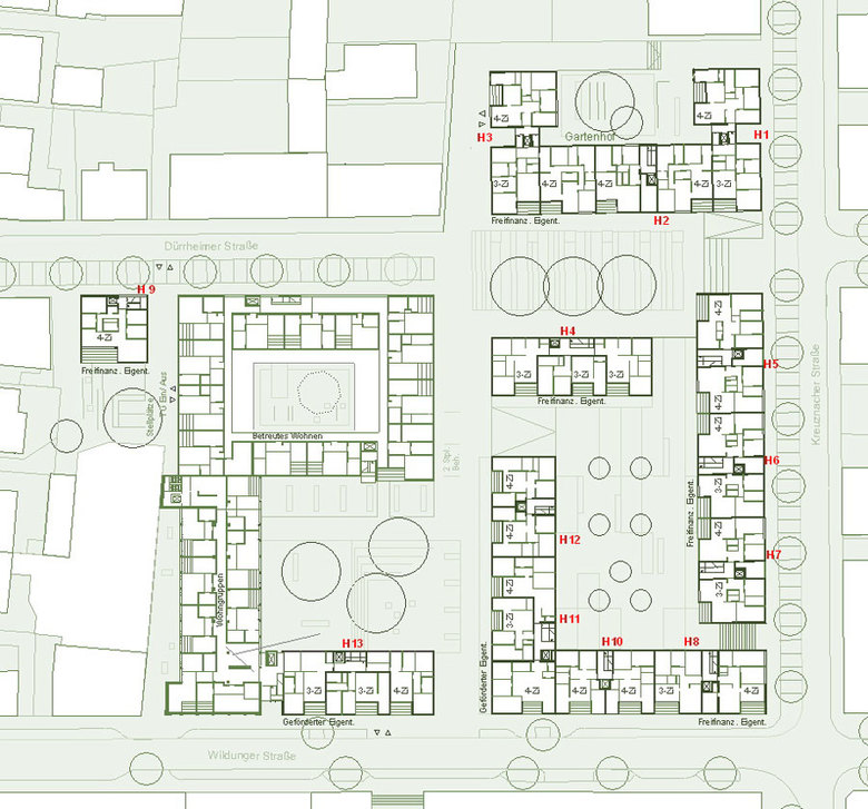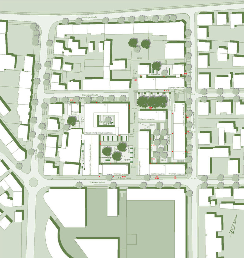 Konversion eines ehemaligen Gewerbeareals. 80 Wohnungen, Pflegeheim St. Anna-Klinik, Betreutes Seniorenwohnen, Kindertagesstätte