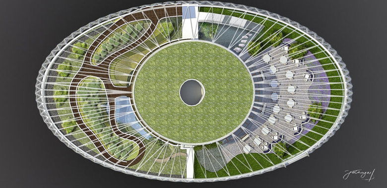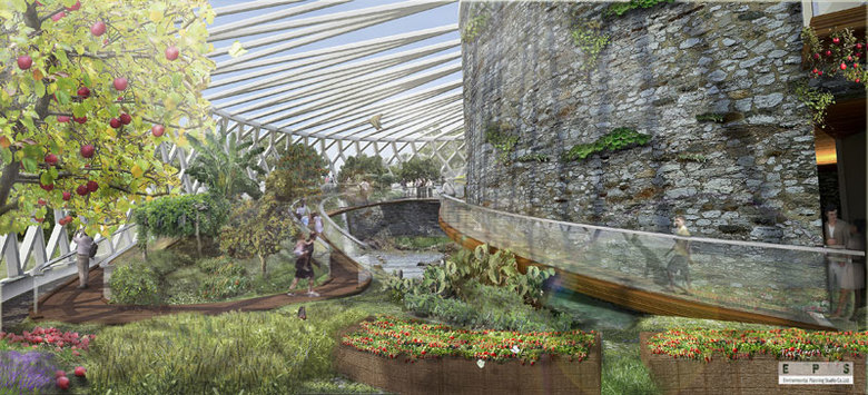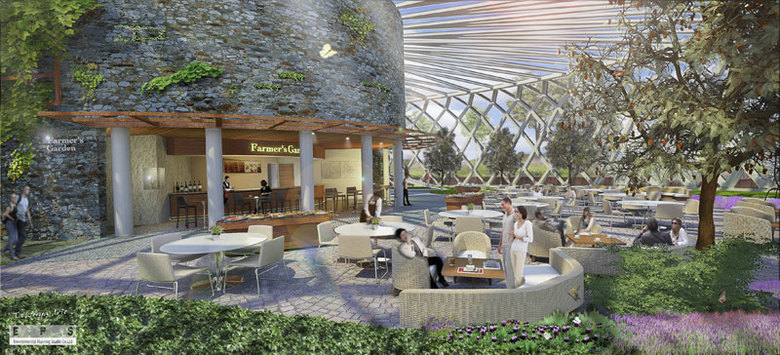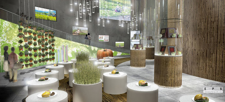 を具現化するために、1階は「エディブルガーデン」と名付けた、植えられている植物全てが食用という室内庭園と、本庭園で栽培されたオーガニックな果物や野菜をメイン食材としたフードコート及び販売コーナーで構成されている。光と風とせせらぎのあるコアシェル=アトリウムを挟んでエディブルガーデンとフードコート「ファーマーズガーデン」を対峙させ上階は農業の先端技術や栽培方法をビジュアルに紹介するメインホールや子供に食の大切さを教える食育の体験教室、一般及び起業者向けの閲覧ライブラリー、ガイダンス及び講演会場などとなっている。
