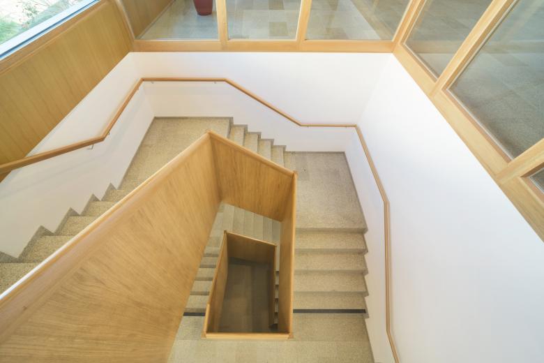 Der Eingang mit Windfang und Aufzug erschließt im Erdgeschoss direkt das Foyer mit angeschlossenem Bürgerbüro. Die Amtsräume bilden einen eigenen, vom Foyer abtrennbaren Bereich. Der Sozialraum mit zugehörigem Sanitärbereich ist sowohl vom Bürgerbüro als auch vom Treppenhaus aus erschlossen. Gegenüber dem Haupteingang führt das Treppenhaus in das großzügige Foyer im Obergeschoss. Der Sitzungssaal orientiert sich zur Hauptstraße und zum Rathausplatz. Gemeinsam mit dem großzügigen Foyer, der Teeküche und dem zugehörigen Sanitärbereich ergeben sich vielfältige öffentliche Nutzungsmöglichkeiten. Bürgermeisterzimmer, Trauzimmer / Besprechungsraum und Vorzimmer bilden eine zusammenhängende funktionale Einheit. Dabei erhält das Bürgermeisterzimmer eine angemessene Orientierung auf den Rathausplatz. Alle funktionalen Bereiche sind so organisiert, dass sie unabhängig voneinander genutzt werden können.