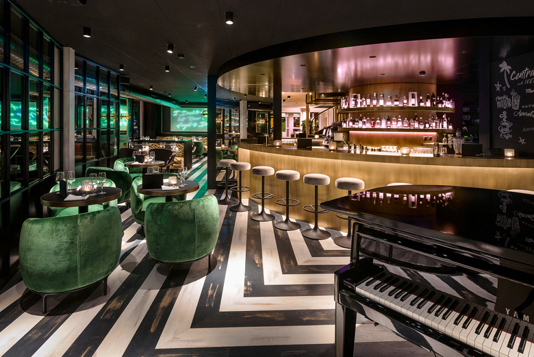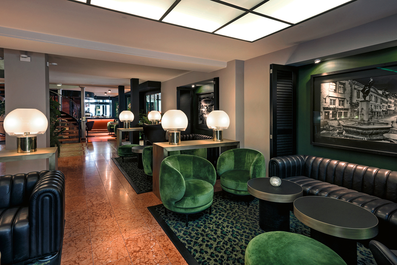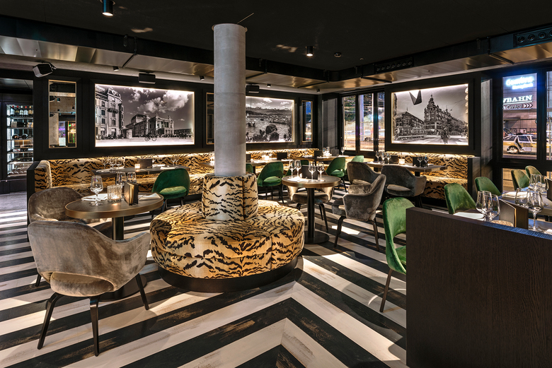 Traditionelle Strukturen für den historischen Hotelbau am Zürcher Centralplatz. Industriechic, handwerkliche Vintageoberflächen werden mit eklektischen Collagenkunst und einem Touch Art Deco kombiniert.