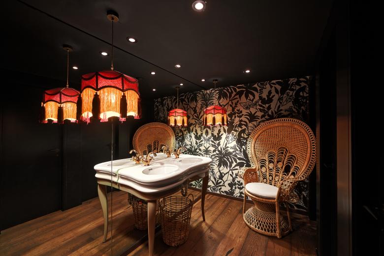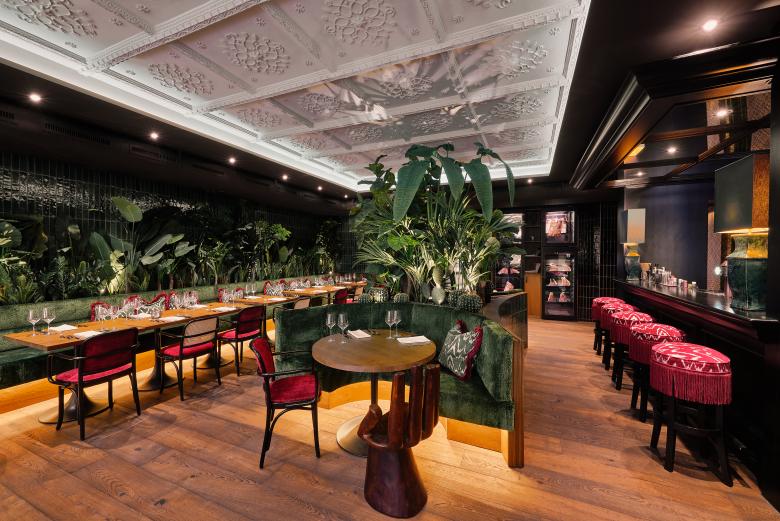 Die Innenarchitektur ist angelehnt an das Haus zur Glocke Baujahr 1793 mit seinen verspielten Ornamenten und der Nikkei Cuisin, eine Fusion von peruanisch und japanischen Speisen.
