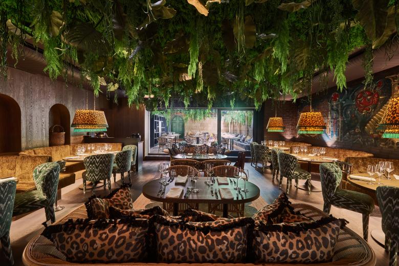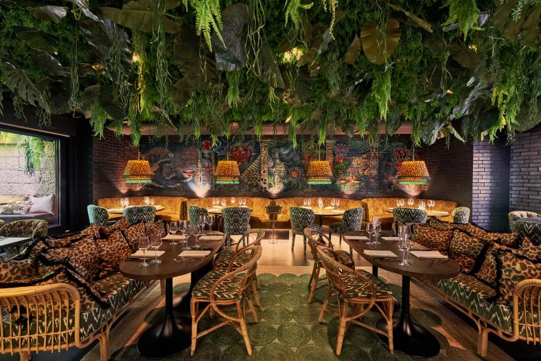 Es entsteht eine sowohl gradlinige wie auch üppig arrangierte Struktur aus gekachelten Elementen, wild gemusterten Ikatstoffen, handwerklich verarbeiteten Naturmaterialien und Rattan, umgeben von der inspirierenden Pflanzenwelt.