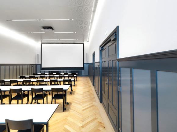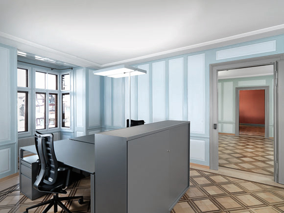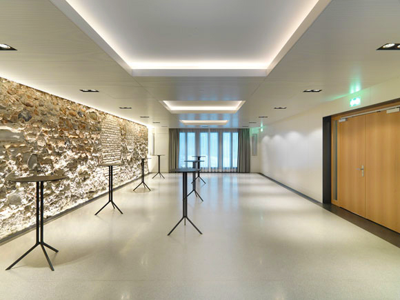 Das ehemalige Vereinshaus wird soweit möglich in seine Originalfassung von 1884 zurückversetzt. Hochwertige Materialien und stimmungsvolle Lichtkörper lassen den Eingangsbereich hell und einladend wirken. Der große Saal und die privatere Schlatterstube im 1. Obergeschoss können als multifunktionale Räume für Vorträge, Schulungen, Sitzungen, Filmvorführungen und für elegante Diners genutzt werden. Im zweiten Geschoss sind Büroräumlichkeiten eingerichtet; zwischen den Balken des mittelalterlichen Dachstuhls entsteht ein stimmiger Konferenzsaal. Der Hofbereich wird zum Ort der Begegnung und kann für Apéros oder als Pausenplatz genutzt werden. Die wenigen Sitzgelegenheiten und die schlichte Begrünung machen den Hof als solchen wieder erlebbar.