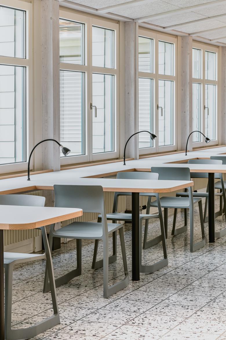 Die Brandschutzertüchtigungen betreffen überdies nicht nur den Neubau von 1995, sondern auch den östlich liegenden Altbau. Der Umbau wurde in 2 Etappen realisiert - E1 Sommerferien 2023 / E2 Herbstferien 2023.