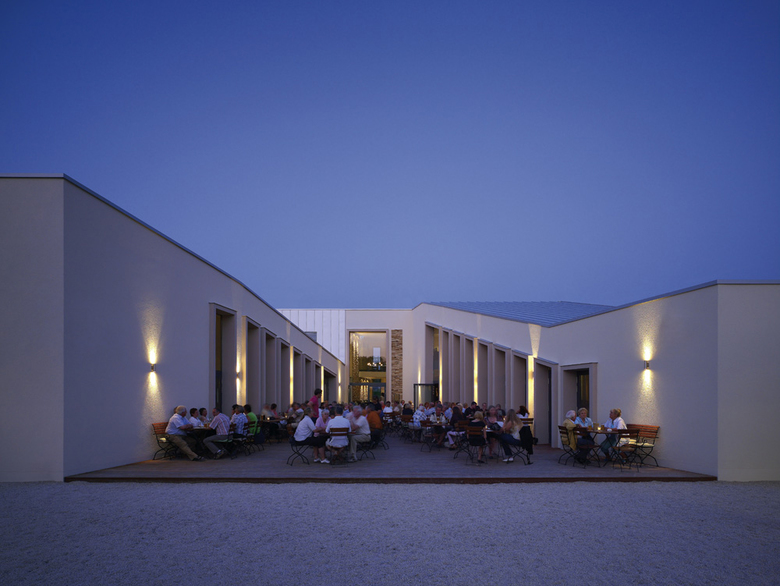 Für das erste Brauhaus in der „Rotweinstadt“ Ingelheim wurde die Marke Brauhaus "Goldener Engel" mit ausdrucksstarker räumlicher Gestaltung im Spannungsfeld zwischen dem Erhabenen der Sakralarchitektur und dem Profanen der Braukultur, gleichzeitig zwischen Tradition und Moderne, entwickelt. Schlitze in der Fassade werden nach einem regelbasiertem Prozess platziert und als Reminiszenz an die lokale Bauweise durch massive Gewände eingefasst. Die Fassade kann als Partitur eines Musikstücks gelesen werden, in dem die Tonhöhe durch die Schlitzhöhe, die Tonlänge durch die Schlitzbreite und der Rhythmus durch die Schlitzabstände definiert wird.