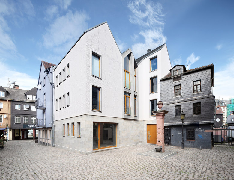 Franken Architekten wurde 2011 von einem privaten Bauherren beauftragt, im Kern der Sachsenhausener Altstadt, durch die Planung eines Wohn- und Atelierhauses in der Kleinen Rittergasse 11 einen neuen Impuls zu schaffen. Der Bestand setzte sich zusammen aus einer maroden dreiteiligen Häusergruppe. Aus der Summe der Gutachten ergab sich, dass die ursprünglich angestrebte Rekonstruktion weder bauhistorisch begründbar noch konstruktiv oder wirtschaftlich darstellbar war. Dieser Auffassung schloss sich auch das Amt für Denkmalschutz an und Franken Architekten plante nun den Abriss des Bestandes und einen kompletten Neubau.