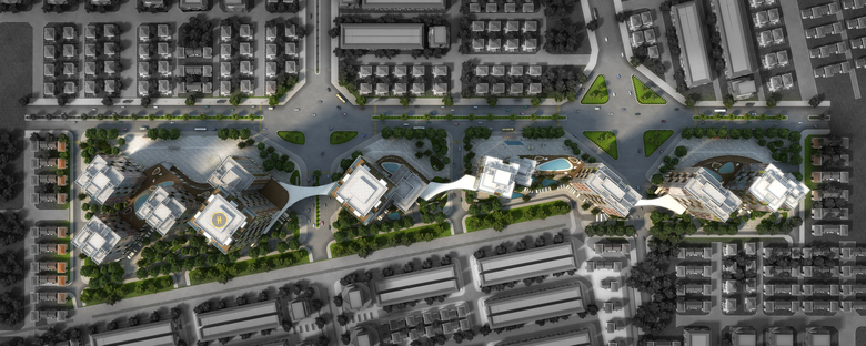 Die 12ha große Stadterweiterung „U-Silk City“ im Süden der vietnamesischen Hauptstadt Hanoi ist das größte im Bau befindliche Projekt in Vietnam und besteht aus neun hochwertigen 28-50 geschossigen Wohn-Hochhäusern und vielfältigen öffentlichen Freizeit- und Shoppingangeboten im verbindenden, begrünten Sockelgeschoss.Die vorgegebene Gebäudetiefe des bereits existierenden und von Franken Architekten zu optimierenden Masterplans wird durch Voids gegliedert und führt durch diese zur Oberflächenvergrößerung, erhöhter Belichtung der innenliegenden Räume, sowie einem guten Mikroklima. Die Voids sind in einer parametrisch generierten rhythmischen Struktur gesetzt und werden so zu „dancing voids“. Jedes Wohn-Hochhaus hat seine eigene rhythmische Struktur, so dass eine Komposition aus neun ähnlichen, aber dennoch einzigartigen Gebäuden entsteht mit zusätzlichen Flächen, die als „Sky Garden“ genutzt werden und Architekturutopien der Vertikalen Stadt referenzieren.Die Wohntürme sind gekennzeichnet vom Spiel mit gefülltem und leerem Volumen, welches sich in der verschachtelten Dachlandschaft mit luxuriösen Penthouse Apartments fortsetzt. Die das Gebäude wie ein Gewand umhüllende Fassadentextur ist aus eloxierten, irregulär rhythmisch in zarten Farben oszillierenden Aluminiumpaneelen und lässt, ebenso wie die welligen Faltungen der geplanten Landschaftsarchitektur, die Assoziation von Seide entstehen, einem der traditionellen Handelsprodukte von Hanoi.