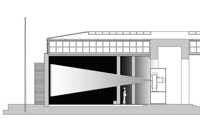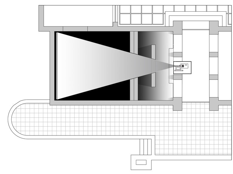Der von Josef Hoffmann 1934 erbaute Österreich-Pavillon in Venedig stellt das Projekt, ihn mit Filmprojektionen zu bespielen, vor einige Herausforderungen. Für Dorit Margreiters Beitrag zur Biennale 2009, die Film-Installation "Pavilion", war ein Raum innerhalb des Pavillon-Raums erforderlich. Dieser wurde geplant und gebaut als ein Raum, der Sonnenlicht abhält, den BetrachterInnen aber leichten Zugang gewährt und sich zugleich für die Leinwandprojektion öffnet – und zwar so, dass die Wände den Verlauf des Lichtkegels eng angepasst umspielen.