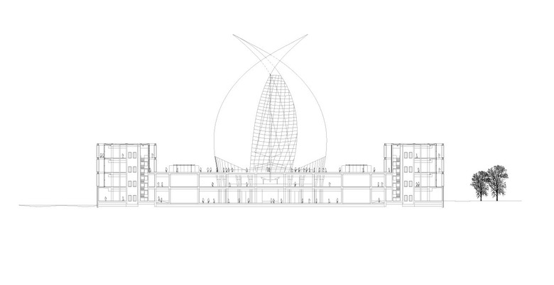 Das erste Schifffahrtsmuseum Chinas überhaupt liegt an dem Ufer eines durch Landaufschüttung dem Meer abgewonnenen 5 km² großen Sees in der Mitte der entstehenden Stadt. Die Analogie eines im Hafen befindlichen Schiffes wird bildlich in der Formensprache der fast mittig im Museumskarree angeordneten 58 m hohen „Segel“ aufgenommen. Die enorme Raumhöhe darunter erlaubt das Ausstellen von vollständig aufgetakelten Dschunken.