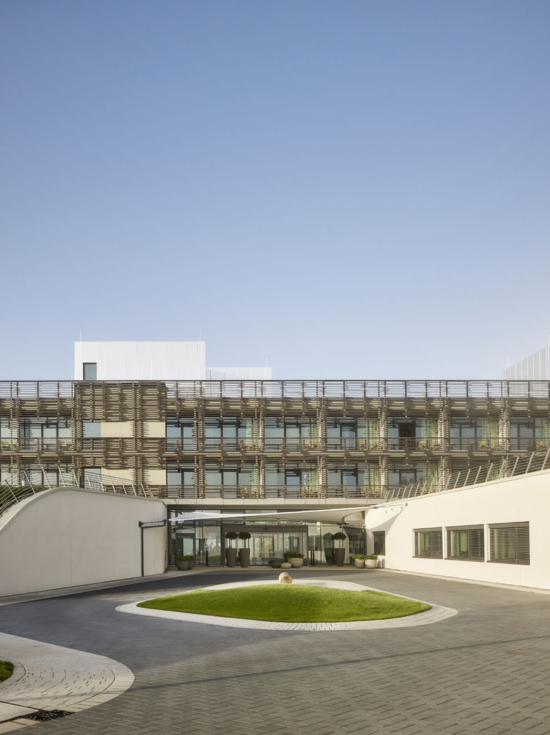The gross building area totals approximately 11,800 m², including the outdoor wellness areas and the covered parking spaces. GRAFT’s design is a response to the spirit of the place, and builds on its qualities to create a new harmonious whole. The result is a travel destination with a special identity of its own.