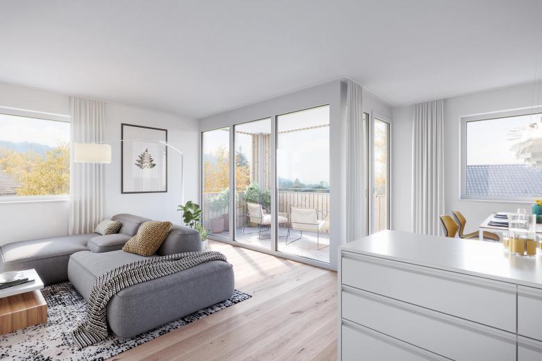 Im Ortszentrum von Hohenweiler entsteht eine hochwertige Wohnanlage mit fünf Gebäuden. Eine Holz- Beton- Hybridbauweise mit Holzfassade setzt nachhaltige Impulse im Dorfzentrum.
