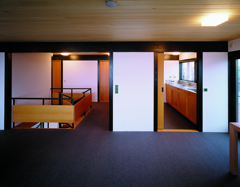Zum anderen ist es ein Modellfall der ökologischen Sanierung eines Holzbaus und ein Beispiel für die nachhaltige Erneuerbarkeit von Holzbauten. Der Holzschirm und die Innenverschalungen der auf Betonwinkeln „schwebenden“ Wohnetage wurden aus lokal verfügbaren Materialien originalgetreu erneuert. Der Austausch der durch chemische Schutzmittel kontaminierten Holzsteher wurde dazu genutzt, um die Dämmstärke zu erhöhen und mit Schafwolle zu erneuern.