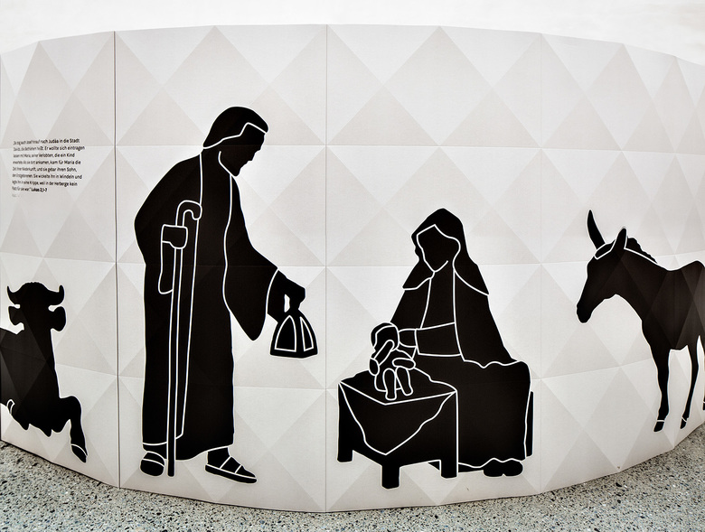 Die “Protagonisten” der Weihnachtsgeschichte werden in Schattenrissen dargestellt. Accessoires und Körperhaltungen werden sorgfältig herausgearbeitet und machen die Figuren so eindeutig identifizierbar. Ihre Rolle und Symbolik wird mit kurzen Beschreibungen und Auszügen aus der Weihnachtsgeschichte vermittelt. Einerseits ein Beitrag zum inhaltlichen Verständnis wohlbekannter Darstellungen und andererseits die Möglichkeit der Erschließung christlicher Symbolik für andere Religionen.