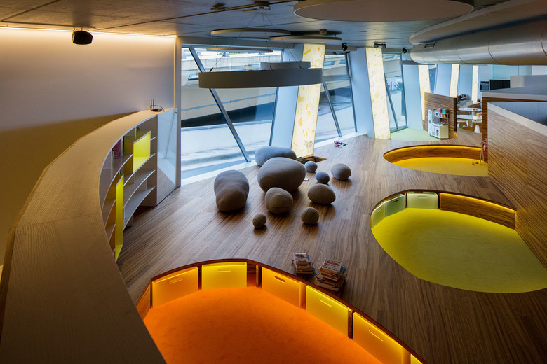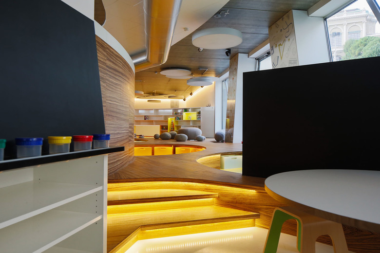 Den Kindern im Club, im Alter von 0-8 Jahren, stehen an 7 Tagen die Woche verschiedenste Spiel- und Kursaktivitäten offen. Unterrichtsbereiche für Kunst und Werken, Musik und Tanz, zum Kochen und Experimentieren gliedern sich zwischen vielseitigen Raumteilern in einen großzügigen Gesamtraum.
