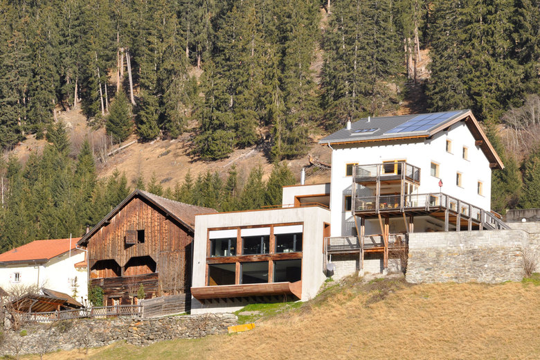 Das Grundstück befindet sich im Südhang von Tinizong Dorfzone mit Aussicht in die Alpen und das Skigebiet von Savognin.