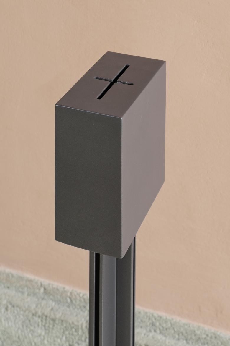 Der Handlauf im Vorraum und der Schirmständer muteten rustikal an und stammten nicht aus der Entstehungszeit, weshalb man sie durch schlichte, zeitgenössische Entwürfe ersetzt hat. Auch der Opferstock und der Kondolenzkartenhalter sind zeitgemässe Interpretationen. Alles diese Schlosserarbeiten sind in Schwarzmetall ausgeführt.