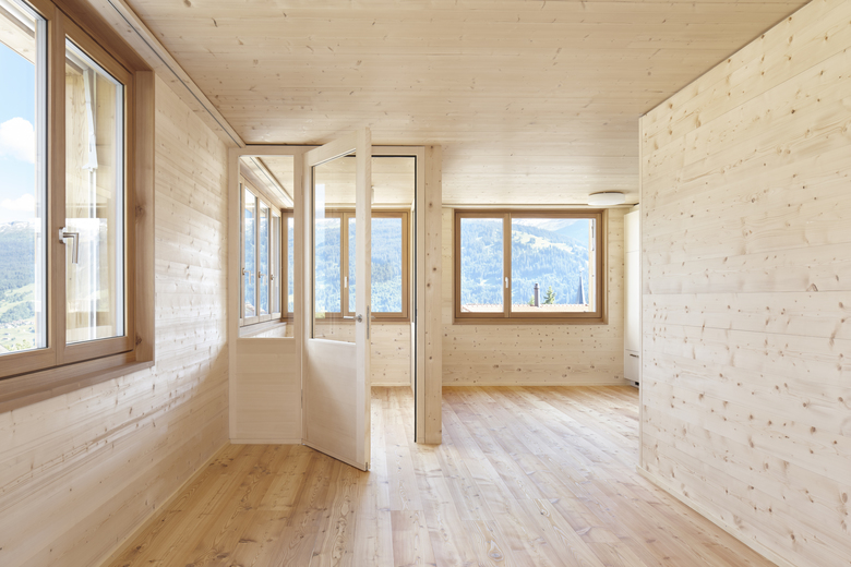 Alle acht Alterswohnungen sind in Holz gehalten: Wände und Decken in Tanne, Böden und Fenster in Lärche. Älteren Menschen bietet diese Materialisierung ein gemütliches, traditionelles und heimeliges Ambiente.