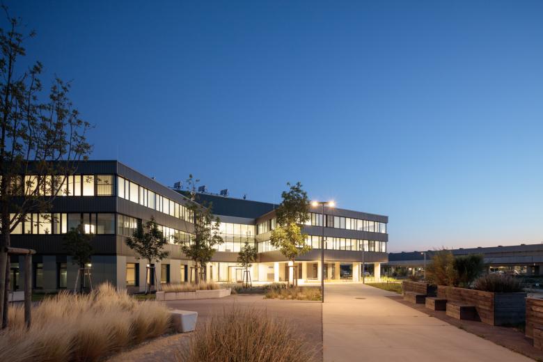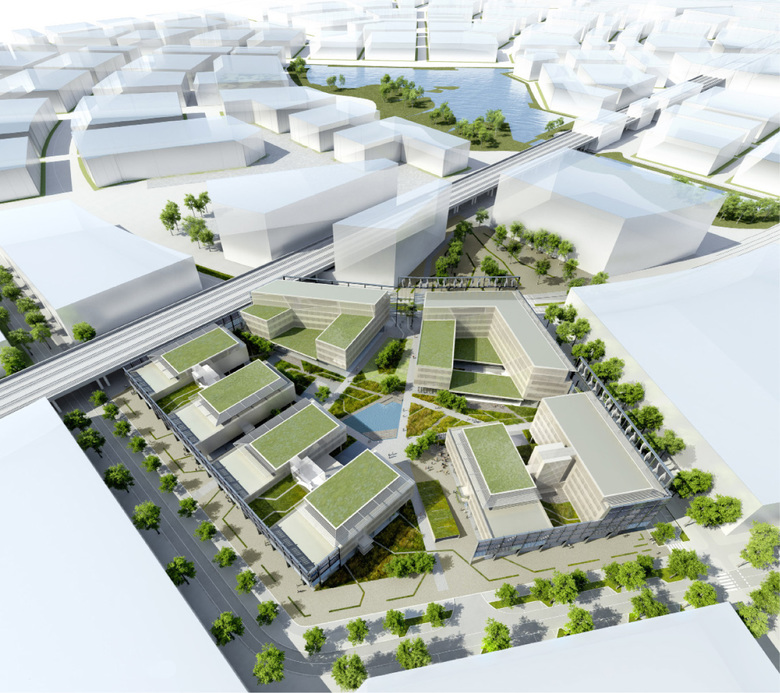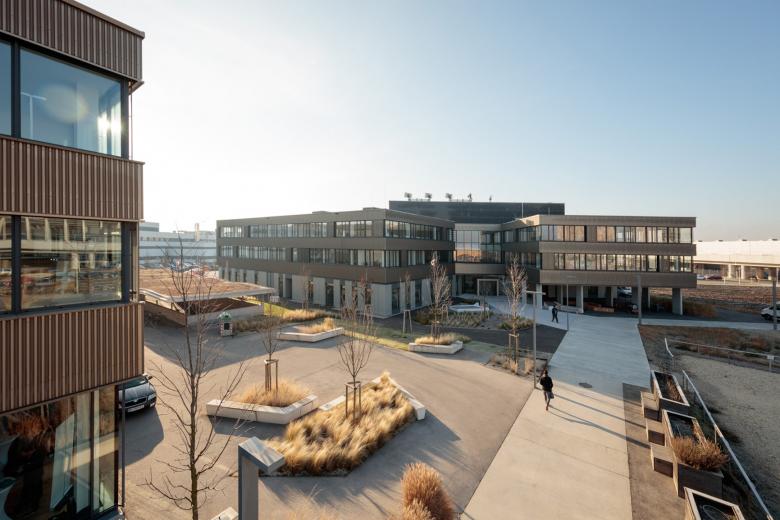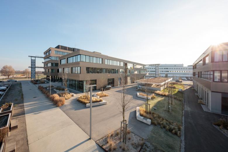 Mitte 2012 wurde als Erstes der Bauteil 1 des Technologiezentrums aspern IQ fertiggestellt, für dessen Freiraum idealice die Gestaltung durchführte. Die Randlage des Technologiezentrum zum zentralen See und die Nähe zu den Donauauen bildet das grundlegende Gestaltungsthema für den Freiraum. Ein übergeordnetes Wegenetz erschließt den Campus für FußgängerInnen und RadfahrerInnen und gewährleistet eine übersichtliche Durchwegung. Das Wegesystem des Freiraums wird in vier Hierarchien eingeteilt. Befestigte Hauptwege und Ringerschließung, Holzstege für die Erschließung der abwechslungsreichen Rückzugsbereiche und ein untergeordnetes Netz aus Schotterwegen.