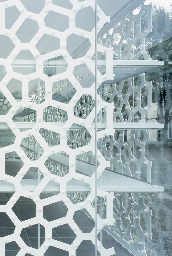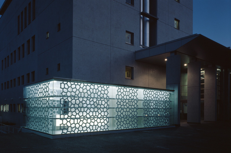 小さな建築であるが、アルゴリズミックな非周期配列を特徴的構造体に応用し、これまでにない建築の考え方への可能性を込めた実験的な作品。ファサードのパターンは、建物は大学事務棟の増築であり、キャンパスに届く荷物を受け取って各研究室に取り次ぐ小さな集配センターの役割を果たし、キャンパスの中心的広場にも面していることから、開放的な空間が良いと考え、ペンローズタイル、すなわち宇宙物理学者ロジャー・ペンローズが発見した数理的法則を応用した構造体とした。