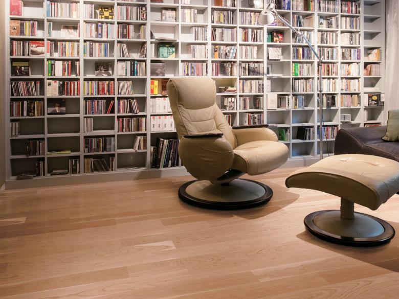 しっとりとしたマットな風合いのラスティック塗装に、光触媒による消臭・ウィルス・細菌・VOC低減効果をプラス。床で発生する固体音を伝わりにくくする特殊クッション材も使用しています。シート貼りが主流となる中、安全・安心、健康かつ快適な、突き板の直貼フローリングです。