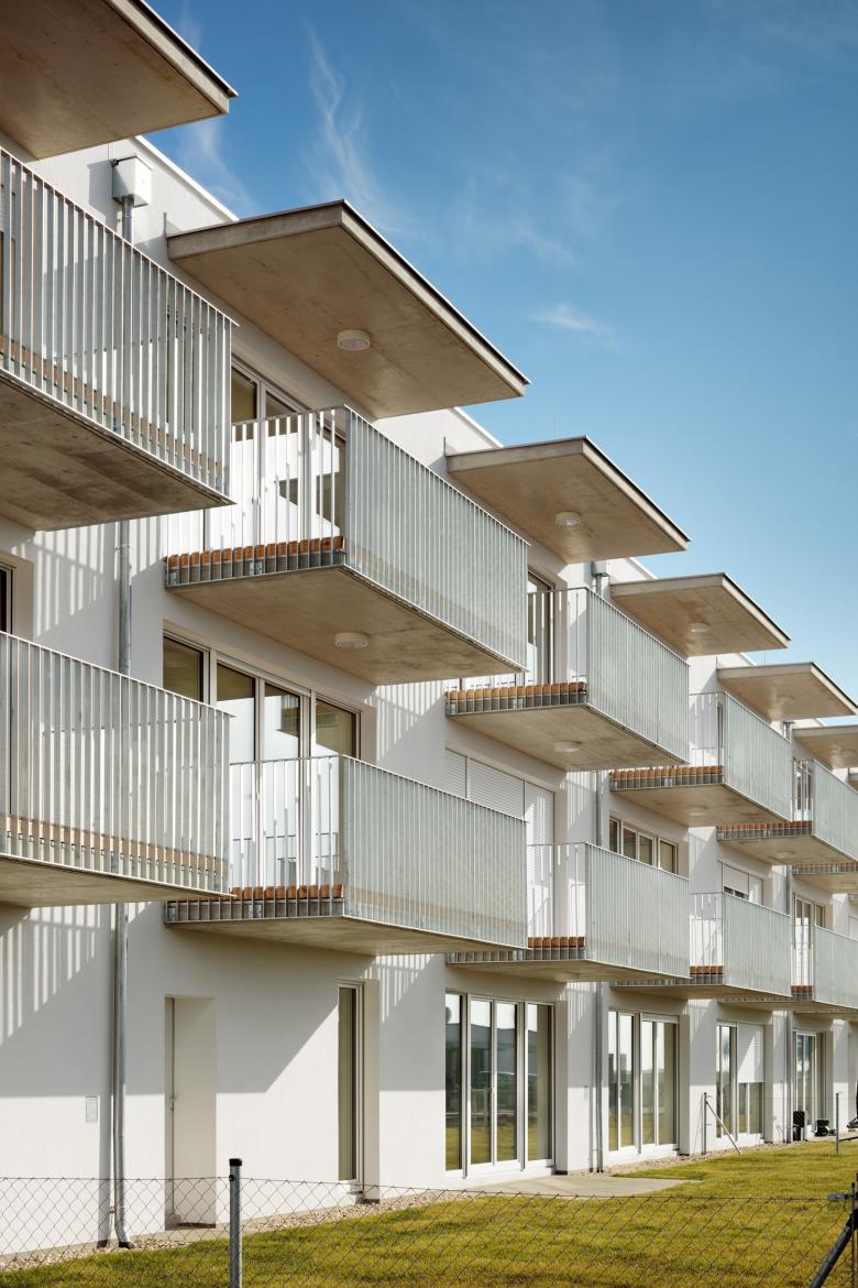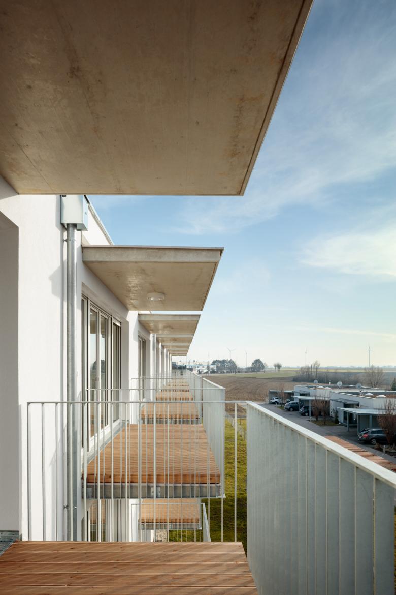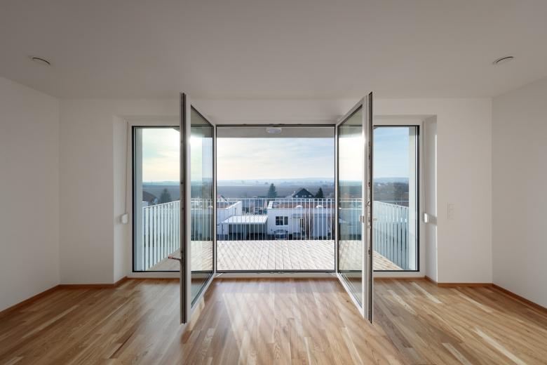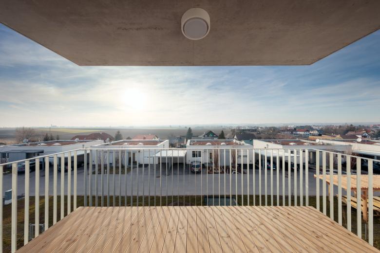 Bei der Entwicklung der Wohnungen wurde auf eine sehr kompakte Größe geachtet. In den Obergeschoßen gibt es 2- bzw. 3-Zimmer-Wohnungen. Jede Wohnung hat einen großen, dem Wohnzimmer vorgelagerten, Balkon Richtung Westen mit einem weiten Blick über den Ort und den Hügeln der Umgebung. Im Erdgeschoß gibt es 2 größere Wohnungen mit Eigengarten.
